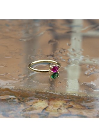Anillo en Plata Duo Esmeralda y Rubí Sintéticos Gold