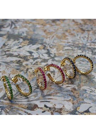 Pendientes en Plata Aro Grande Rubí Sintético Gold