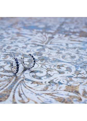 Pendientes en Plata Aro Chico Zafiro Sintético Silver