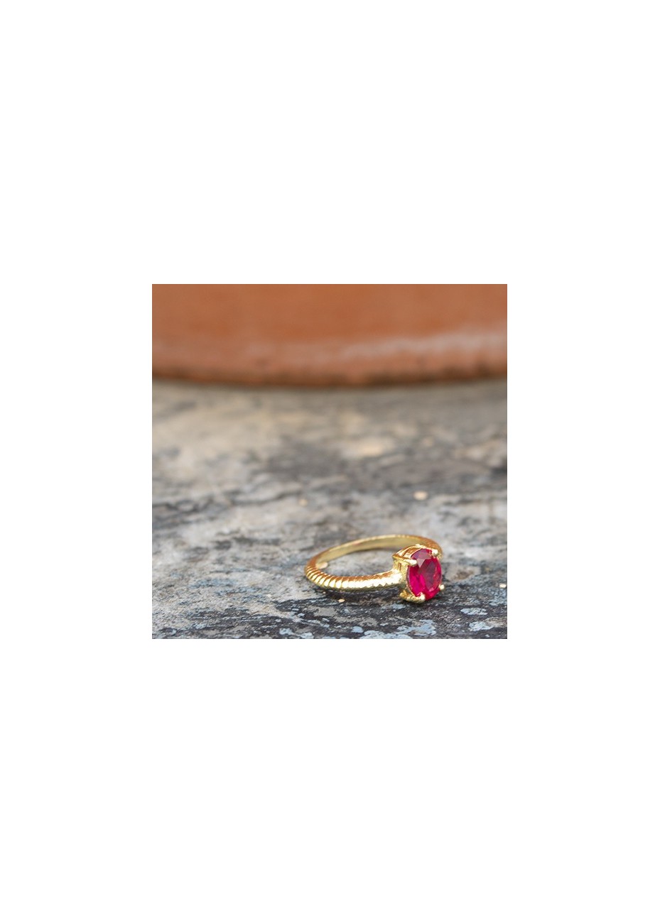 Pendientes en Plata Tre Rubí Sintético Gold